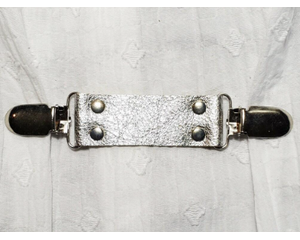 Silver metallic leather cinch clip, dress clip, jacket clip, ...